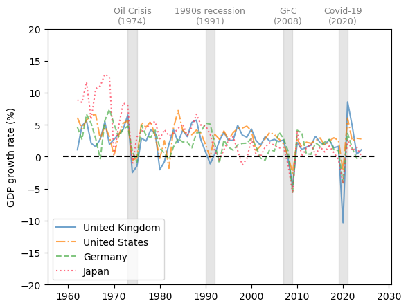 plot_comparison(gdp_growth.loc[countries, 1962:],