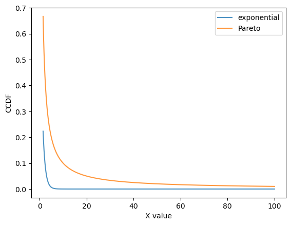 Looking at the output of the code, our main conclusion is that the Pareto assumption leads to a lower mean and greater dispersion.