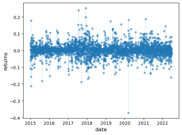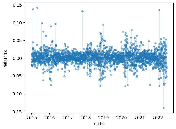 Our aim is to plot the daily change in the price of Amazon (AMZN) stock for the period from 1st January 2015 to 1st July 2022.