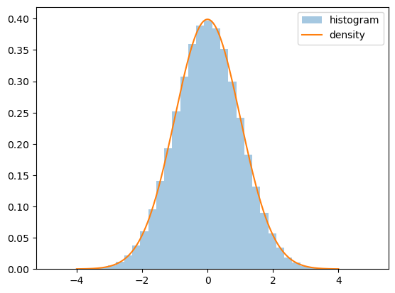 ax.plot(x_grid, norm.pdf(x_grid), label='density')