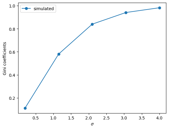 "Gini coefficients of simulated data")