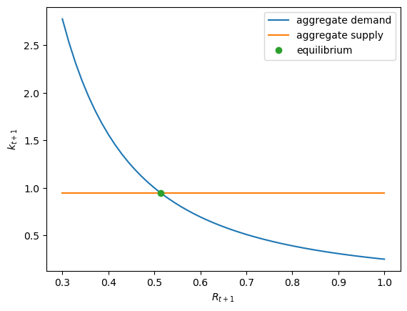 Equating supply and demand will allow us to determine equilibrium in the OLG economy.